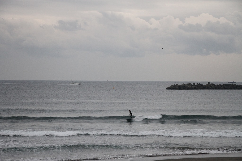 昨日の夕方は天気は曇りで肌寒く状況的にはサーフィンに向かない感じだったのですが、ノンキー前の波が良くロングボーダーが2名のみ、その内一人はKチャンでインサイドまで走れるかなりまとまったいい波に乗り放題!波が良いのでなかなか上がれず薄暗くなるまで入っていた71歳の熟練サーファーでした。